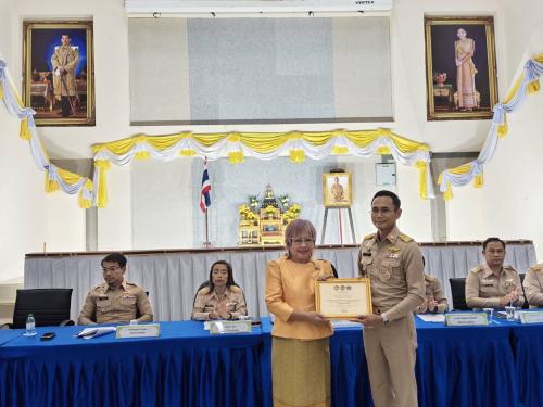 ในการนี้ นางสาวกัลย์สินี ชะนะ พัฒนาการอำเภอสัตหีบ ได้เข้าร่วมประชุมและมีการมอบเกียรติบัตรให้แก่ผู้ผลิตและผู้ประกอบการ OTOP อำเภอสัตหีบ ในการน้อมนำลายผ้าพระราชทาน สร้างสรรค์ ต่อยอดผลงานตามอัตลักษณ์ท้องถิ่น สืบสานพระปณิธานของสมเด็จพระเจ้าลูกเธอ เจ้าฟ้าสิริวัณณวรี นารีรัตนราชกัญญา ภายใต้แนวพระดำริ “ผ้าไทยใส่ให้สนุก”